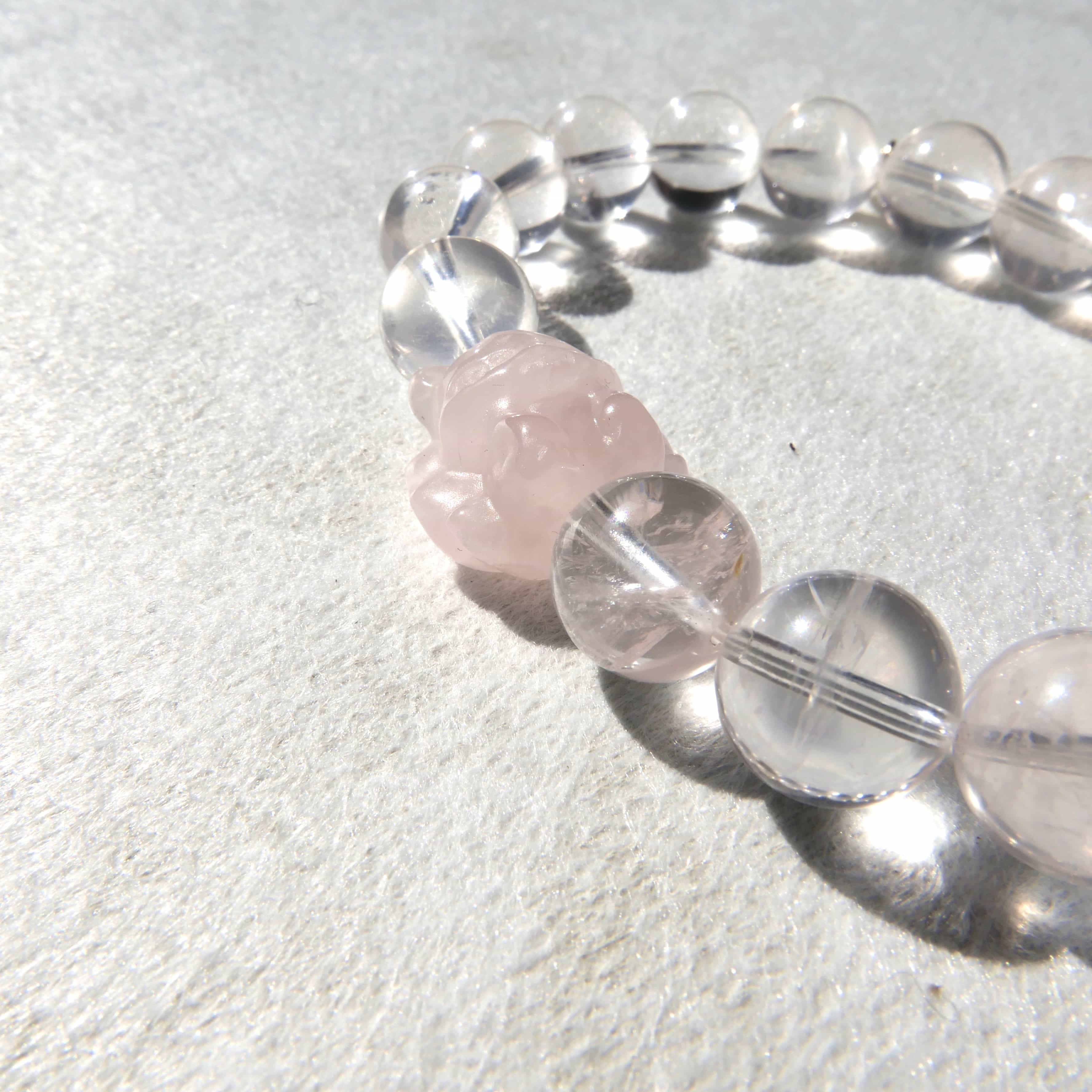 Each bracelet is meticulously handcrafted with premium-grade natural crystals, combining the gentle radiance of rose quartz with the warm golden tones of citrine. The nine-tailed fox charm, a symbol of grace and wisdom in Eastern culture, adds a distinctive artistic touch to this sophisticated design.