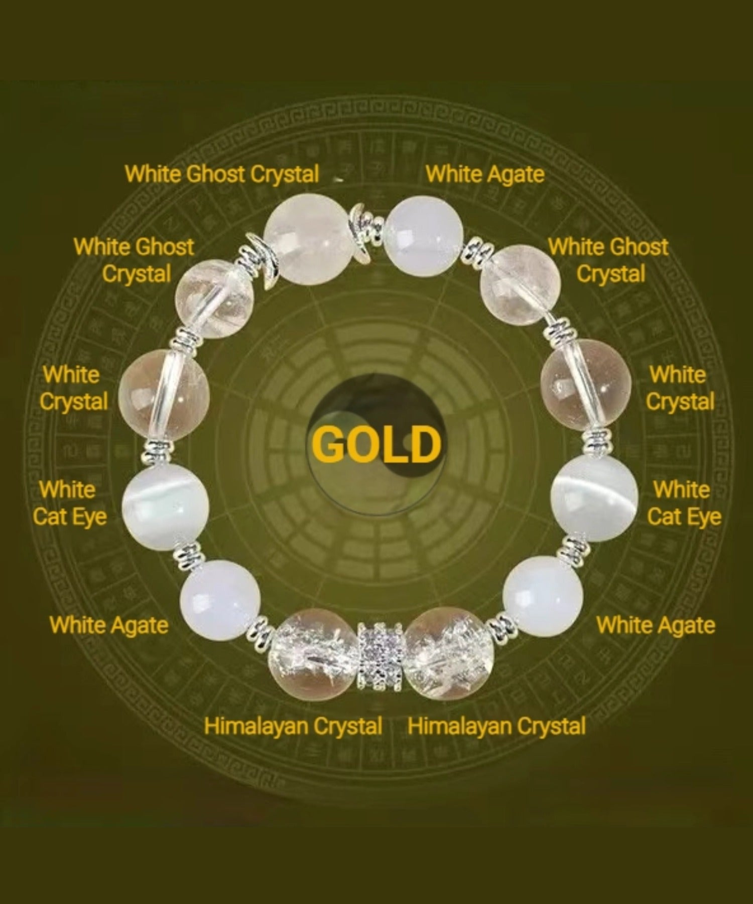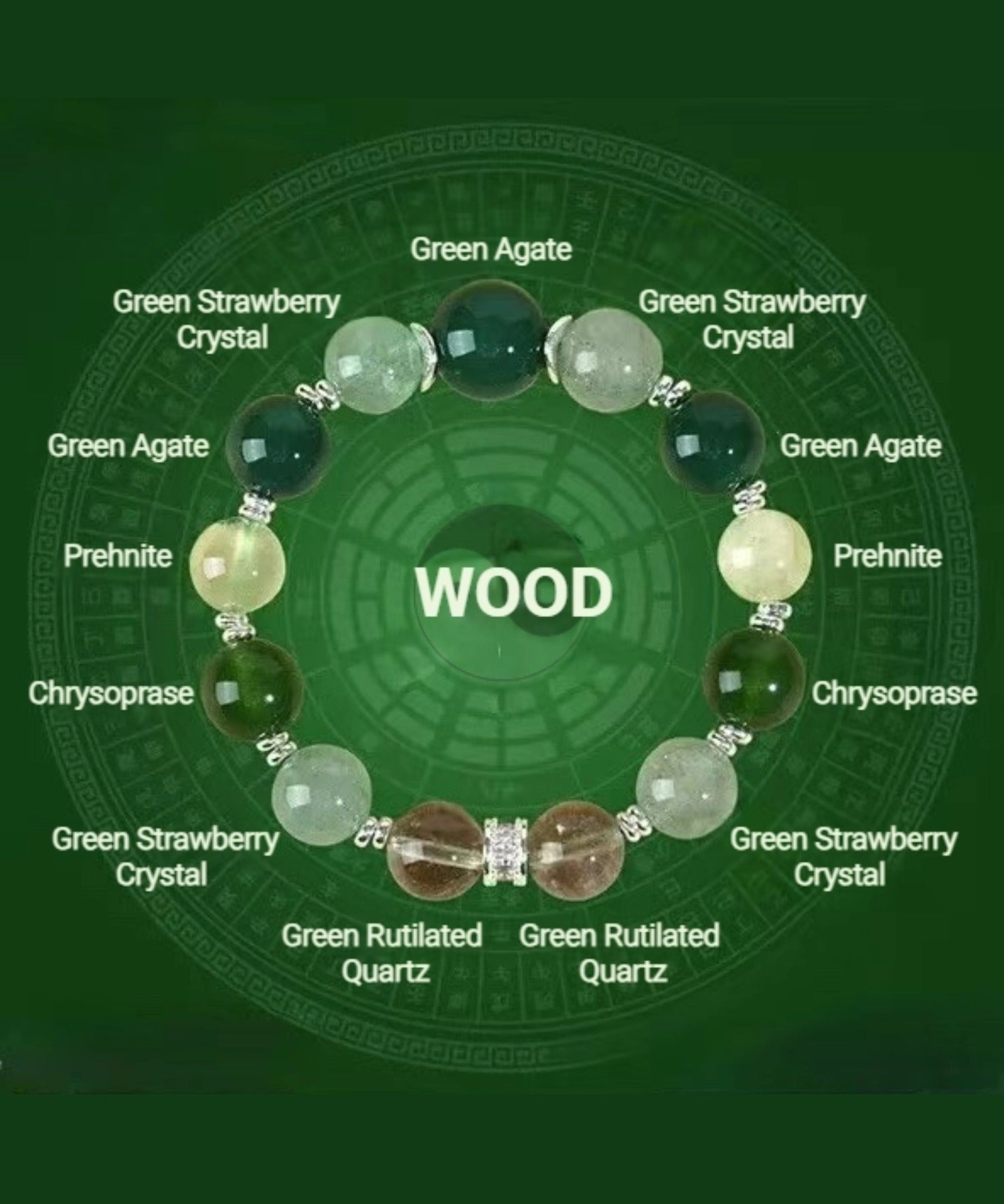 The ancient Chinese Five Elements (Gold, Wood, Water, Fire, Earth) are the building blocks of energy. Our crystal bracelets and pendants are tailored to each element, so you can wear the power that resonates with your needs: